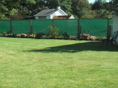 Groen windbreekgaas, op maat sneden van de rol. Prijs is per strekkende meter windbreekgaas, dus 100cm hoog en 100cm lengte. De kleur van het doek is landscapegreen / donkergroen.