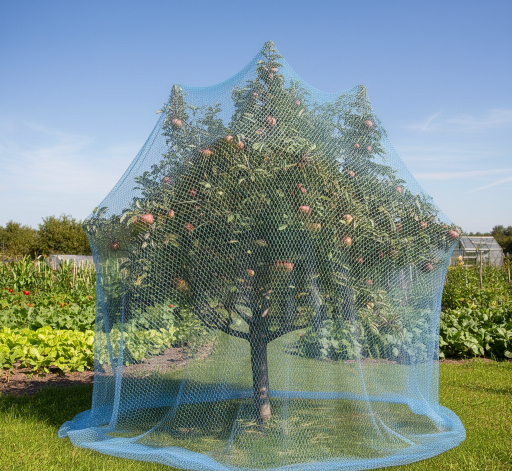 • Na de oogst opbergen: verwijder het net na de oogst en berg het droog en donker op. Hoewel het UV-bestendig is, verlengt dit de levensduur aanzienlijk en voorkom je onnodige slijtage door weersinvloeden buiten het seizoen. Vouw het net netjes op om klitten te voorkomen.