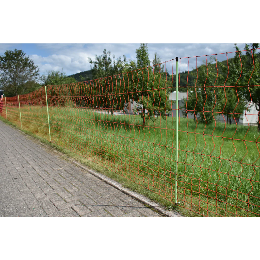 Ongekende stabiliteit: dankzij de 15 robuuste PVC-palen met dubbele punt staat het net als een huis, zelfs op een oneffen ondergrond of in een zachte weide. De palen buigen niet, waardoor je afrastering altijd strak blijft staan.