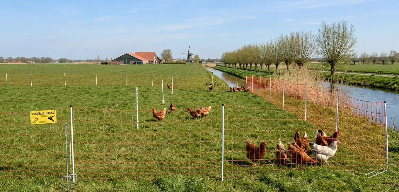 Zoek je een betrouwbare oplossing voor je pluimvee die écht blijft staan? Het Euro-Net dubbelpunts-net is al meer dan 45 jaar de standaard in de sector. Dit professionele elektrische afrasteringsnet is specifiek ontwikkeld voor de pluimveehouderij en combineert gebruiksgemak met een extreem lange levensduur.