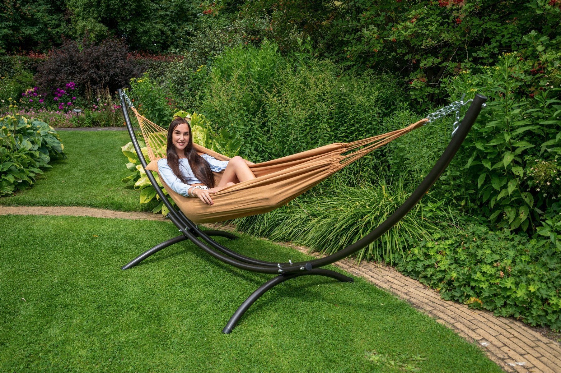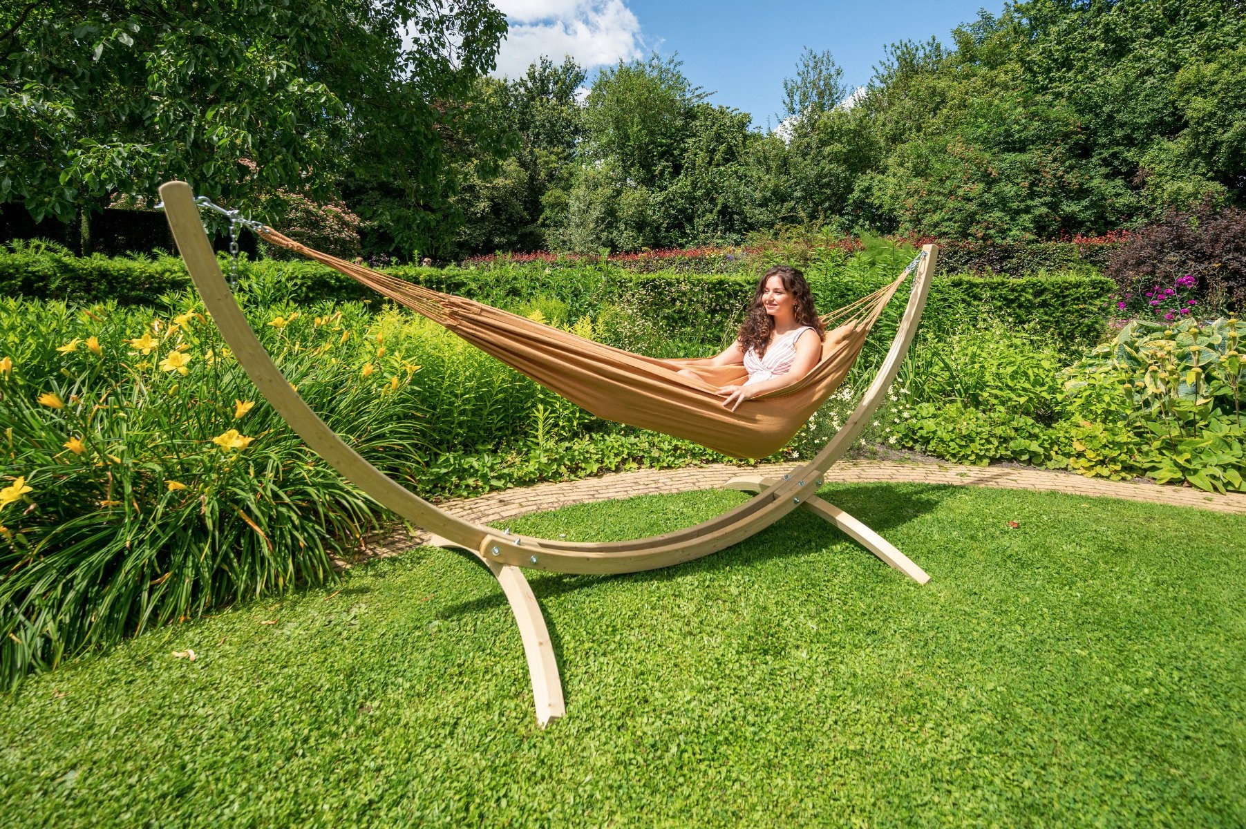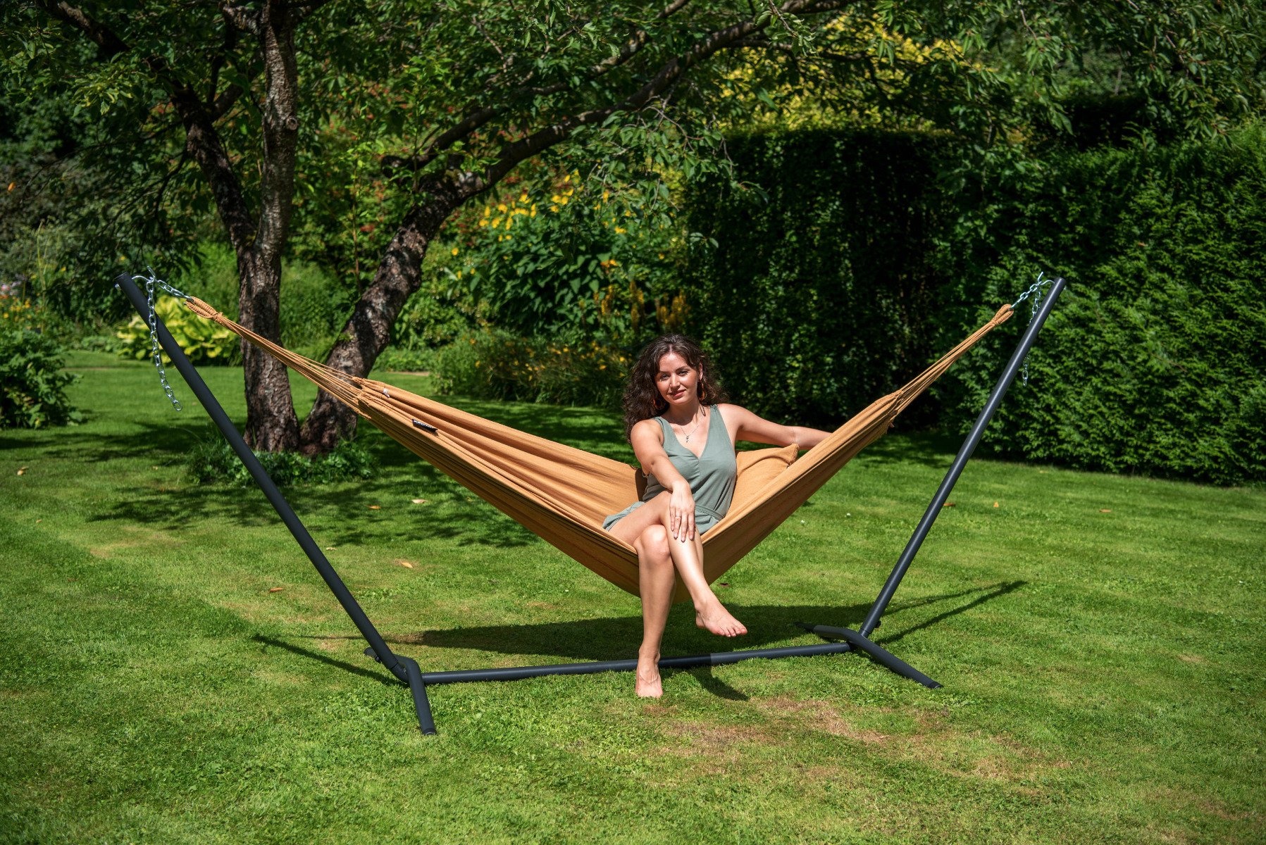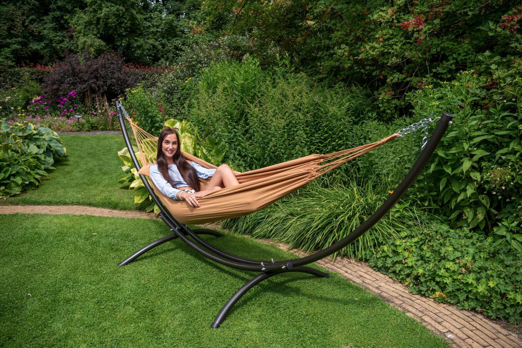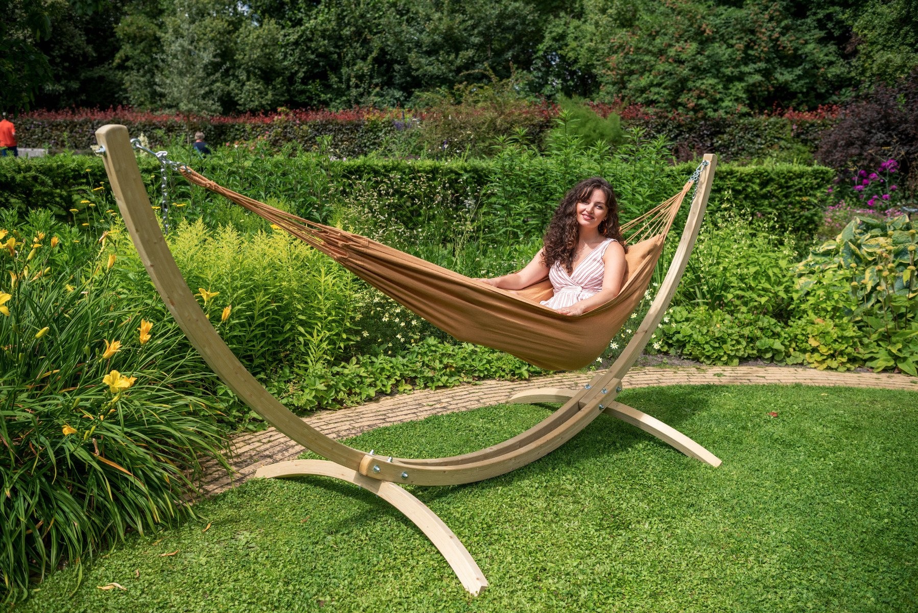 Met vakmanschap gemaakt in Brazilië maar met de afmetingen afgestemd op de lengte van westerse mensen. Voor hangmatten geldt: hoe groter het doekoppervlak, hoe lekkerder je ligt.