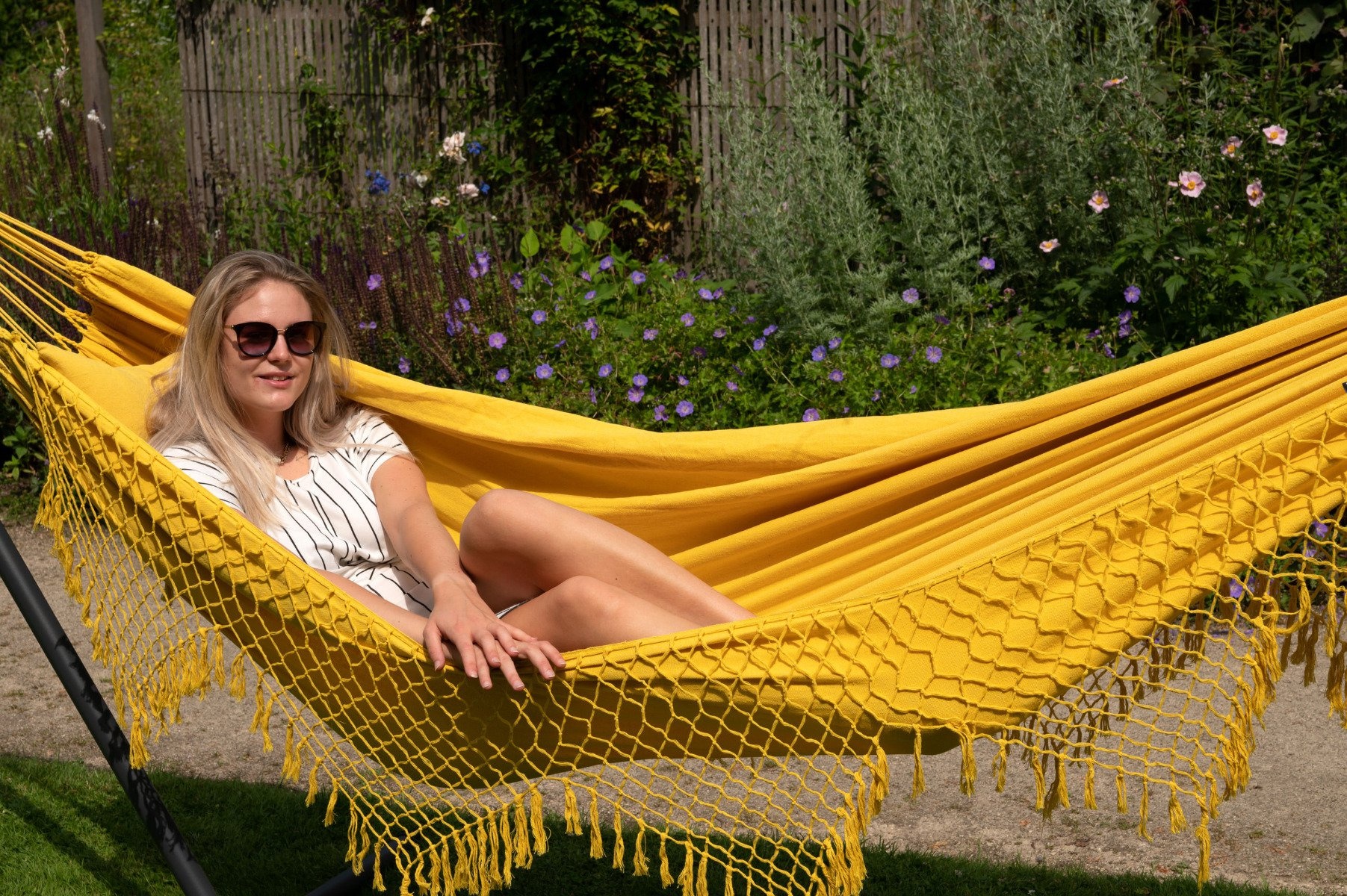 Met vakmanschap gemaakt in Brazilië maar met de afmetingen afgestemd op de lengte van westerse mensen. Voor hangmatten geldt: hoe groter het doekoppervlak, hoe lekkerder je ligt.