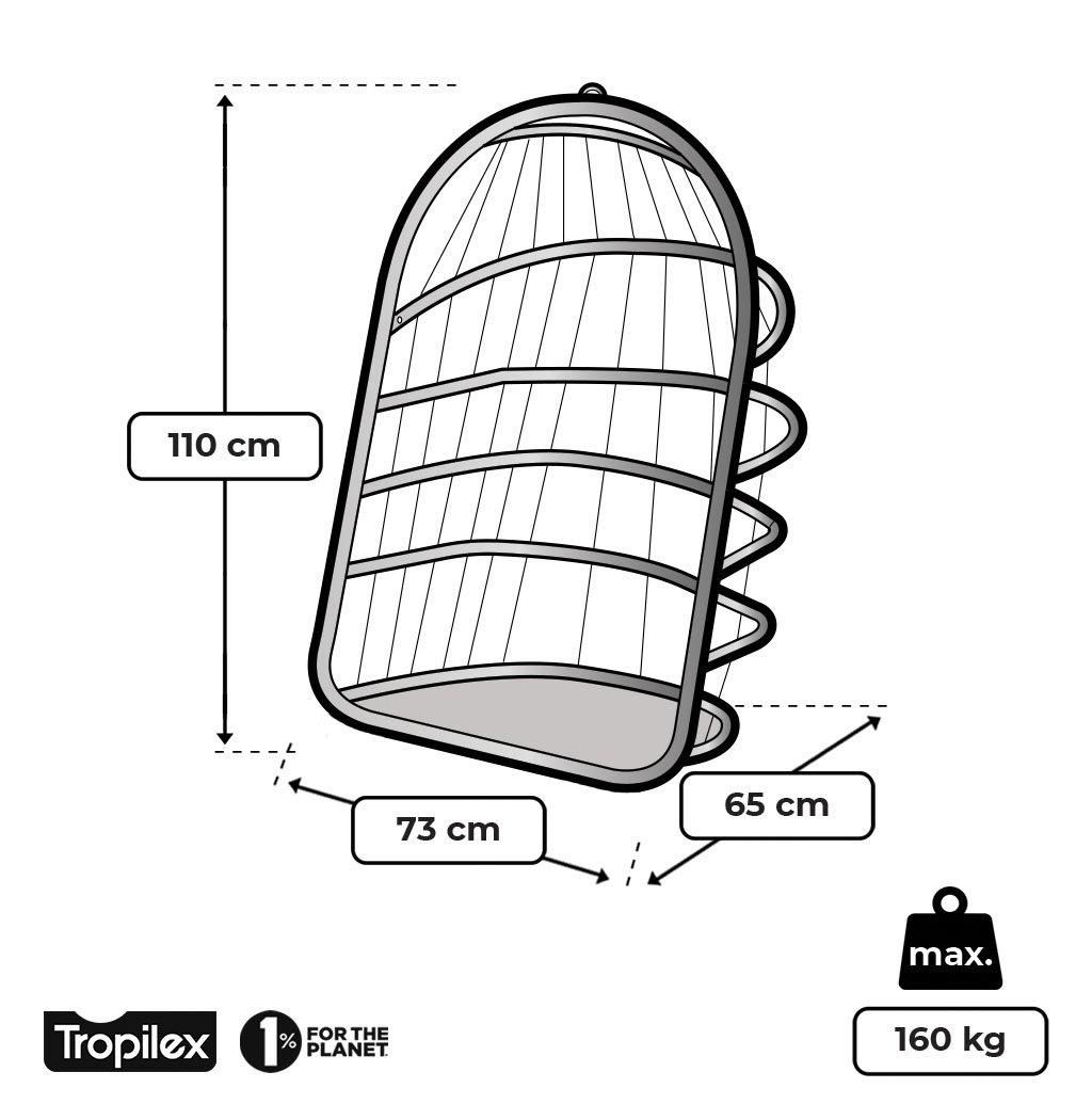 De Tropilex rotan hangstoel is ontworpen met het oog op comfort en heeft een ruime zitting en rugleuning die zich naar je lichaam vormt voor maximaal comfort. In tegenstelling tot andere ei hangstoelen wordt je nek hier niet dubbelgevouwen. Je kan echt ontspannen in deze hangstoel.De Tropilex rotan hangstoel is ontworpen met een strakke en moderne esthetiek die elke inrichting zal aanvullen.