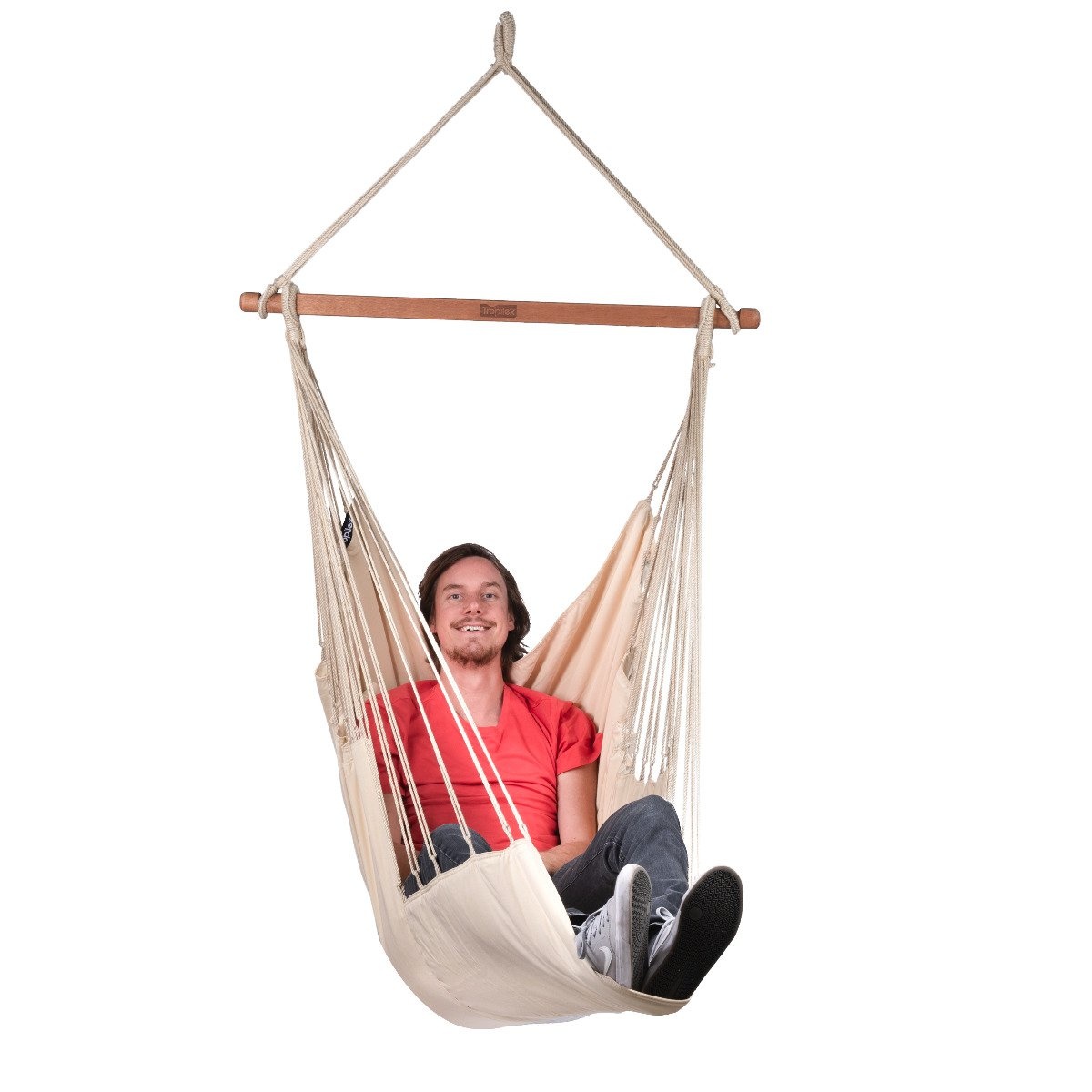Amerikanen gaan voor luxe en willen graag ultiem relaxen. Daarom is deze hangstoel extra groot, extra stevig en extra comfortabel. Het gewatteerde doek zorgt ervoor dat je nog zachter zit in de hangstoel. De spreidstokken zijn gemaakt van luxe Shorea hout, uiteraard 100% FSC. Gemaakt van Olefin. Olefin is een zachte, lichtgewicht stof dat speciaal ontworpen is voor buitengebruik. Het fijne uiterlijk zorgt ervoor dat het een aantrekkelijke stof is voor hangstoelen.