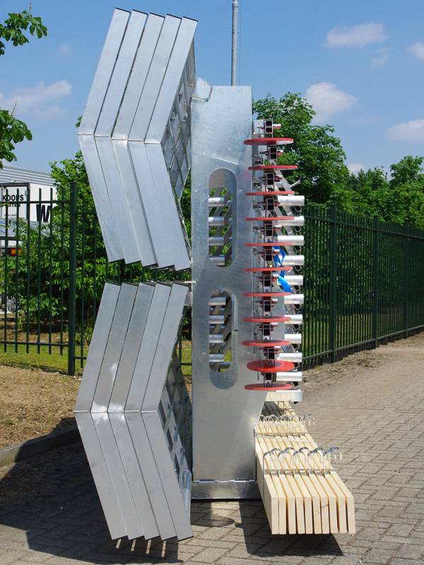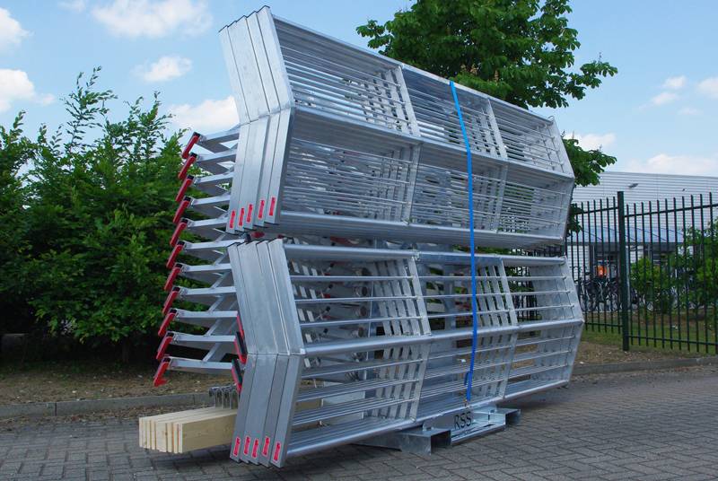 Er zitten dus 11 staanders, tien hekken, tien kantplanken en 10 haakbeugels in het frame. Het geheel is zelfs volledig geladen niet groter dan 2,1 m (H) x 3,0 m (B) x 1,0 m (D)