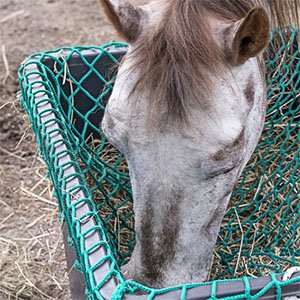 Vanwege de maaswijdte niet geschikt voor kleine paarden. Optioneel kunt u karabijnhaken gebruiken om het net op te hangen, deze worden standaard niet meegeleverd maar zijn wel te koop bij nettenshop.nl