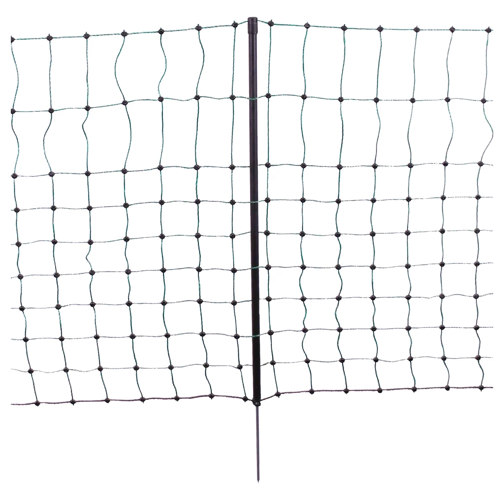 Eenvoudige Plaatsing: De palen zijn uitgerust met een enkele metalen punt, waardoor het net zeer snel en licht in de grond te steken is. Ideaal voor wie de afrastering regelmatig wil verplaatsen.