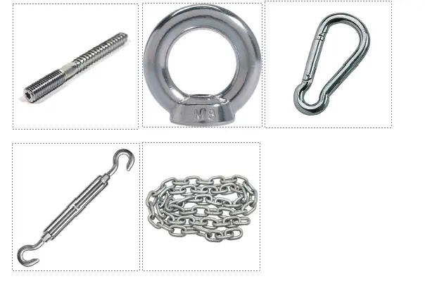 Beschikbaar in verschillende uitvoeringen en sets. De vorm en het aantal hoeken van je zonnedoek bepaalt welke set je nodig hebt.