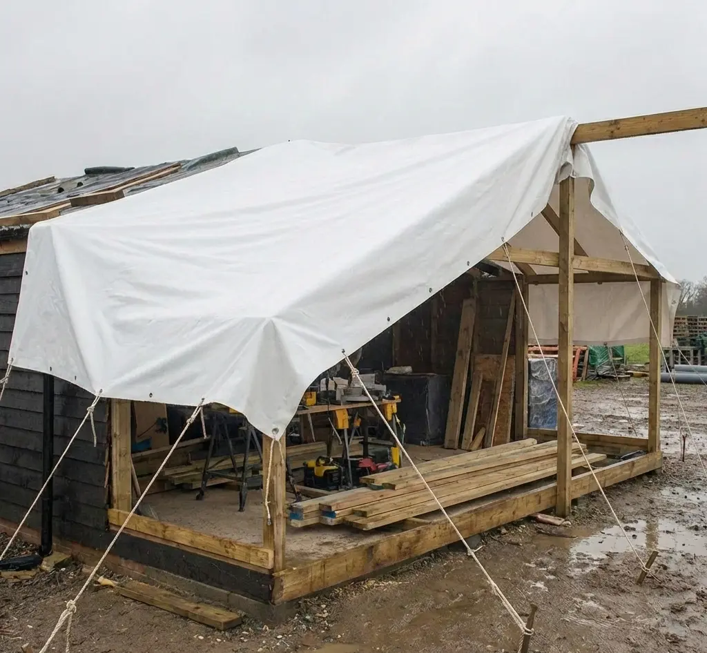 Stop schade, start bescherming: bouwzeil & nooddak van topkwaliteit!