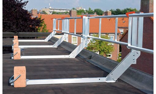 Als je op het dak werkt, is een veilige werkomgeving erg belangrijk. De valbeveiliging plat dak zorgt daarvoor. Dit aluminium systeem voorkomt dat mensen of spullen naar beneden vallen. De tijdelijke valbeveiliging plat dak is speciaal ontwikkeld voor situaties waarin permanente dakrandbeveiliging te duur of te omslachtig is.