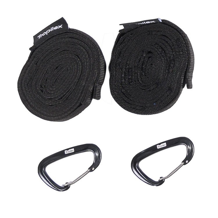De bijgeleverde Tree-Trap is 2 x 3 meter lang. Genoeg lengte dus om een grote afstand te overbruggen. De twee lichtgewicht karabijnhaken klik je makkelijk aan de reishangmat vast.