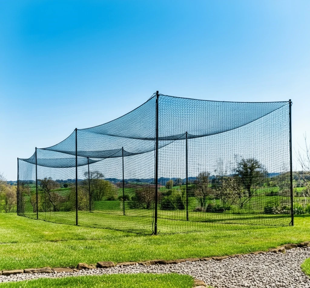 Wij raden aan om het slagkooi net iets kleiner te nemen dan het frame van de kooi. Hierdoor hangt het net niet strak tegen het frame aan en kan het de energie van de ingeslagen ballen beter verdelen over het net.