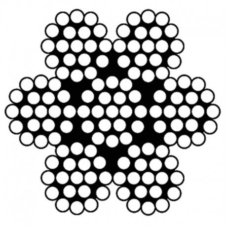 Deze kabel is gemaakt van 7 strengen van 19 draden, de treksterkte is ruim 800kg voor deze kabel. Daar kunt u met een gerust hart een net mee spannen.
