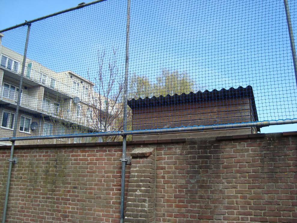 Extra sterk geknoopt net voor het tegenhouden van ballen, vuurwerk, bekers en allerlei spullen die niet op het veld thuishoren. Deze netten zijn leverbaar in iedere gewenste afmeting, mits het een veelvoud van 45mm is. De netten zijn gemaakt van 3 mm dik PE en bijzonder sterk. Deze netten rekken bijna niet tot helemaal niet, meet goed de maat op en bestel exact de maatvoering.