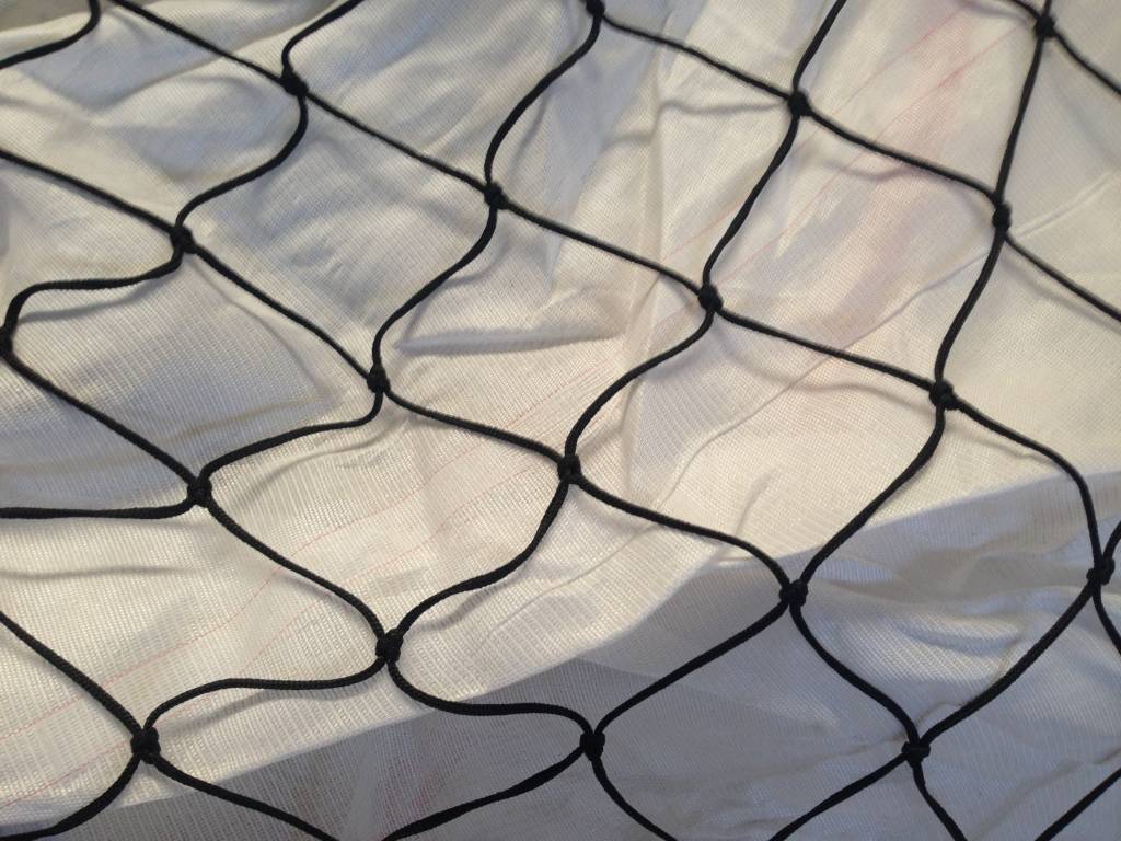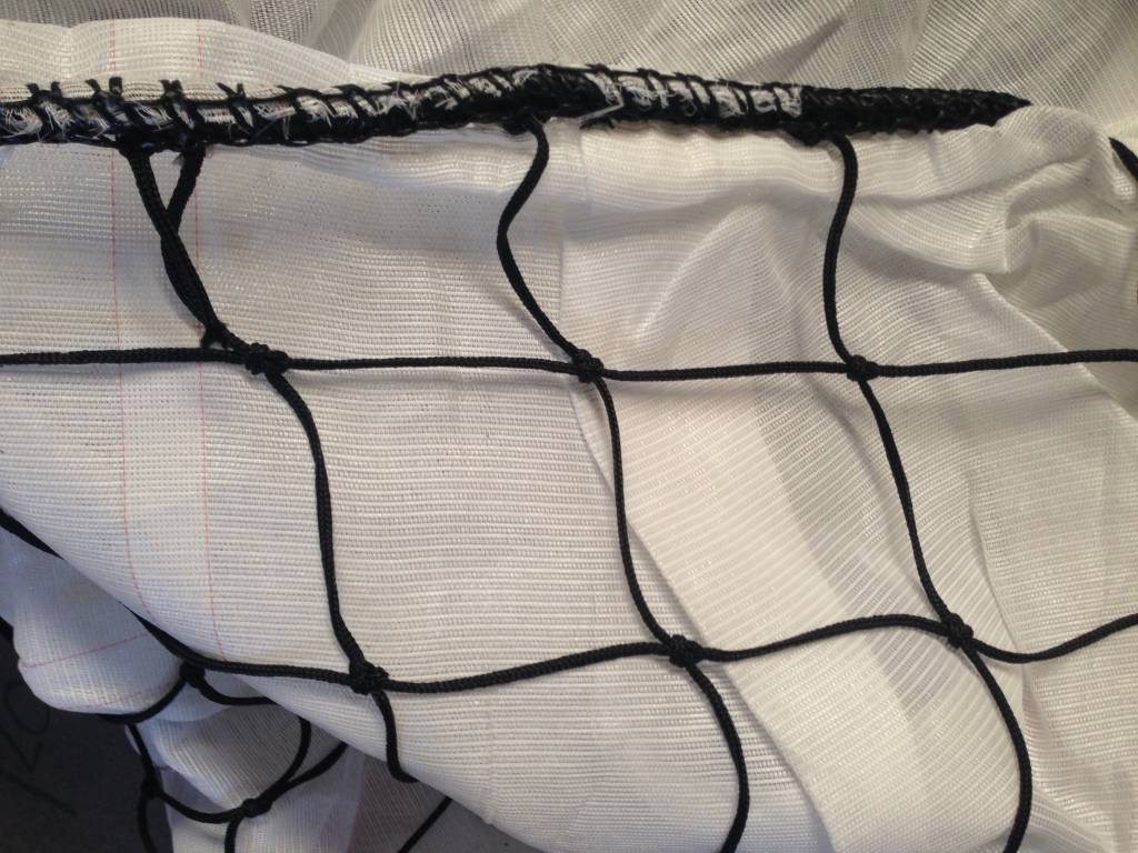 Voorzien van een ingeweven randtouw van 11 mm voor aanvullende stevigheid. Maaswijdte is 100 mm en het net is gemaakt van 3 mm dik nylon koord. De hoeken zijn voorzien van een metalen kous voor bevestiging. Doordat de netten geknoopt zijn is reparatie van kapotte mazen eenvoudig mogelijk. Kijk bij het kopje touw voor de diverse reparatie koorden voor geknoopte netten.